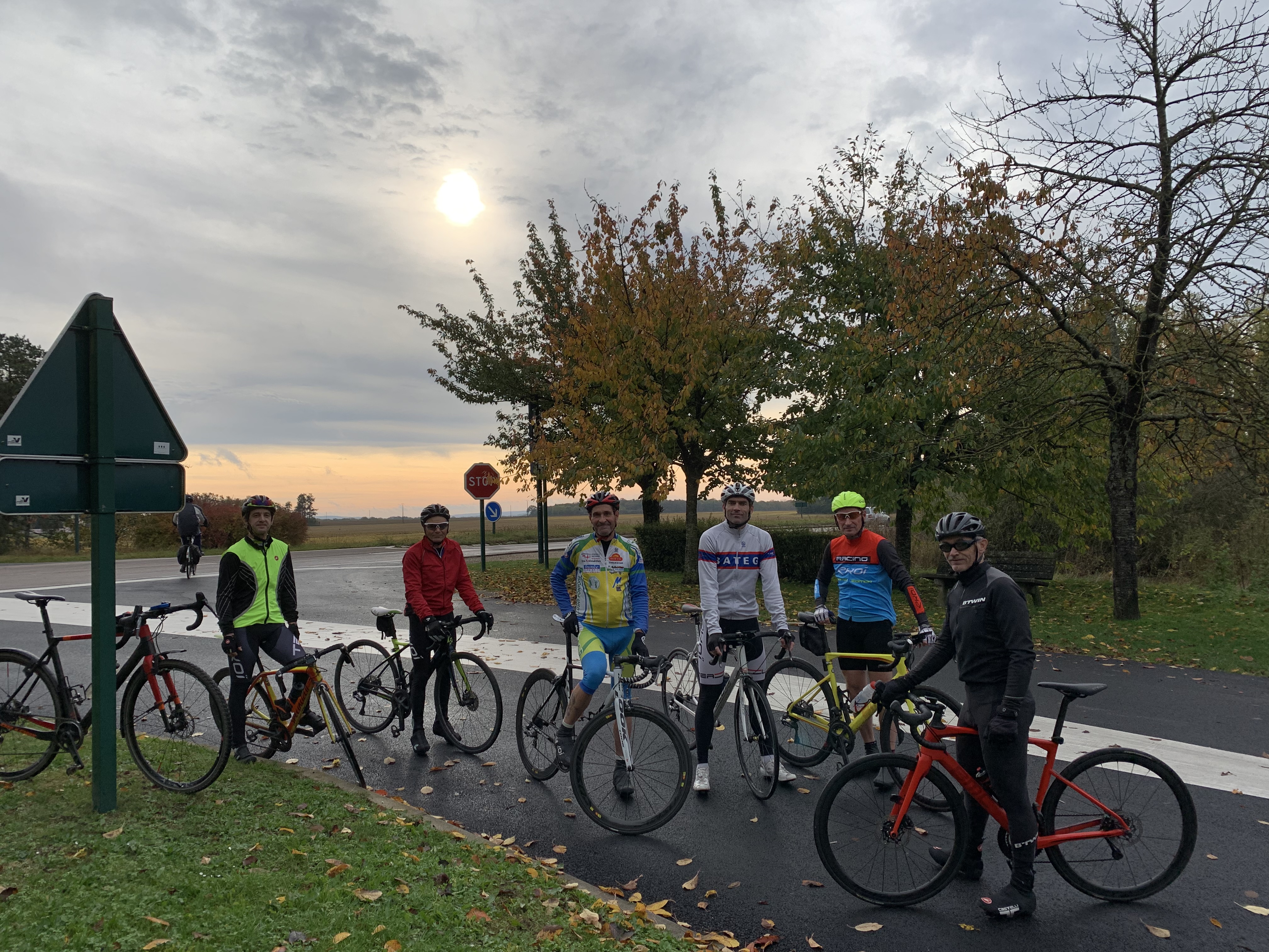 Fred avait mis sa tenue d’hiver, histoire de ne pas avoir froid en nous attendant (surentrainement également en cyclo-cross, ça donne du peps !), Didier était bien visible avec son casque Ekoi fluo que l’on voit de très loin… Même pas une crevaison au vu de l’état de la route.