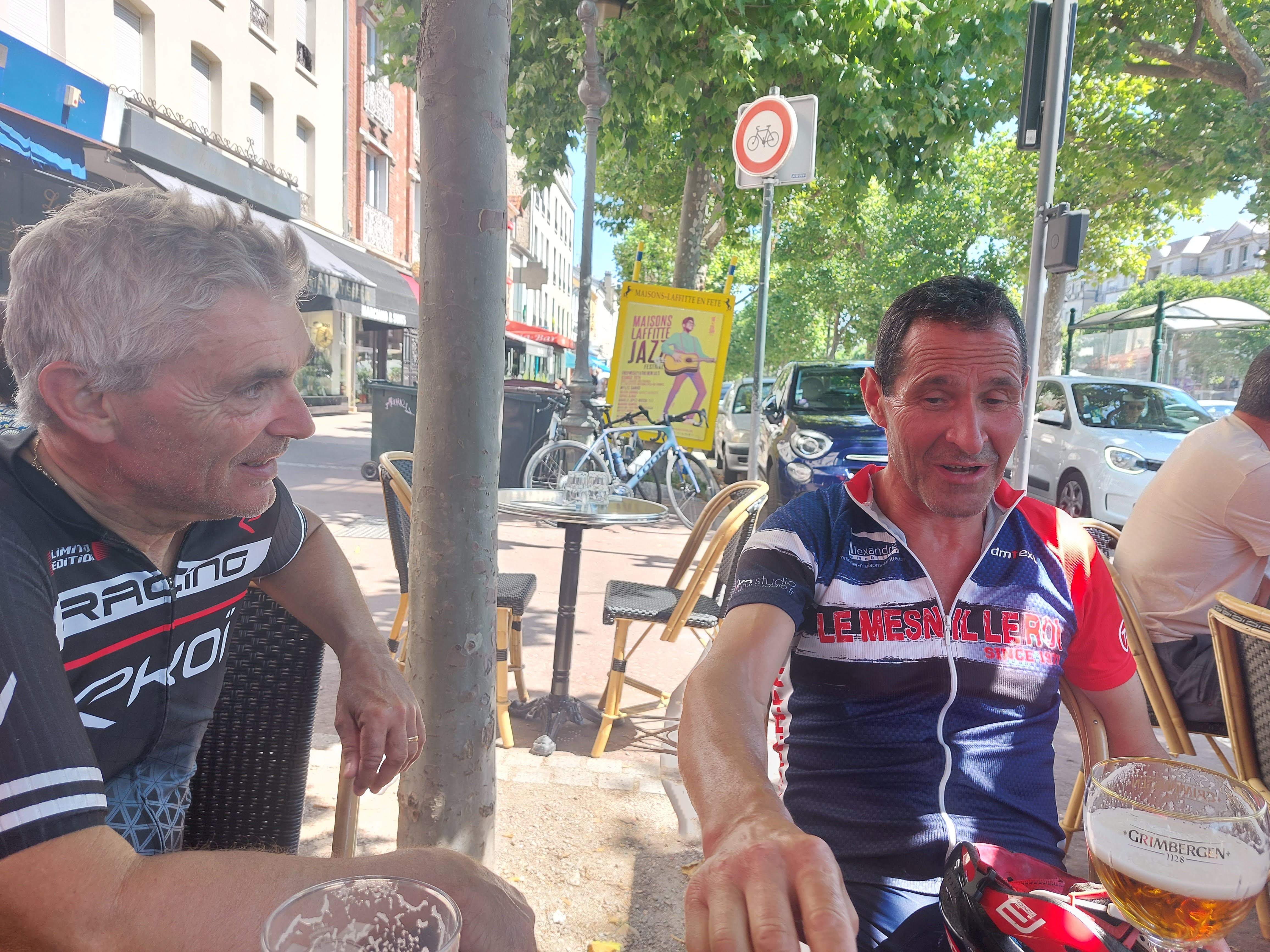 Malgré les désertions au profit de maisons Laffitte, et bien que tout seul au départ du Mesnil à 8:00, je croise par miracle et in extremis Jean-Jacques, lequel bien informé des manigances adverses, nous guide vers la zone d'évacuation de nos ressortissants Mesnilois : c'est à Poissy que l'extraction d'Yves et Ramiro s'effectue, sans encombre par l'avant du peloton.
