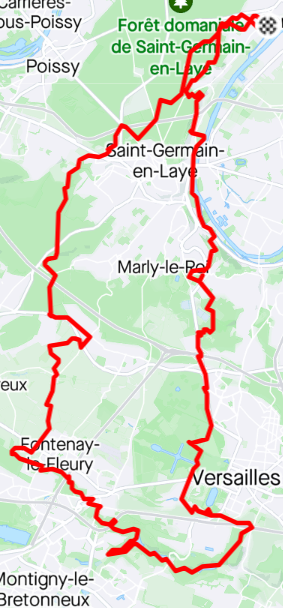 Nous avions prévu une sortie longue à Versailles ce samedi, mais je la reporte à dimanche afin de viser une météo plus clémente. Départ à 9h30 du club, avec picnic, direction Versailles (65km), par une trace en PJ préparée par Bernard.