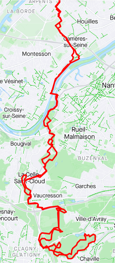 Avec Phiphi, on propose une sortie en direction de la forêt de Meudon en passant par la forêt de Cucufa . Départ de chez Phiphi à 8h30 . 60 kms max qu’on peut raccourcir suivant météo et état physique.