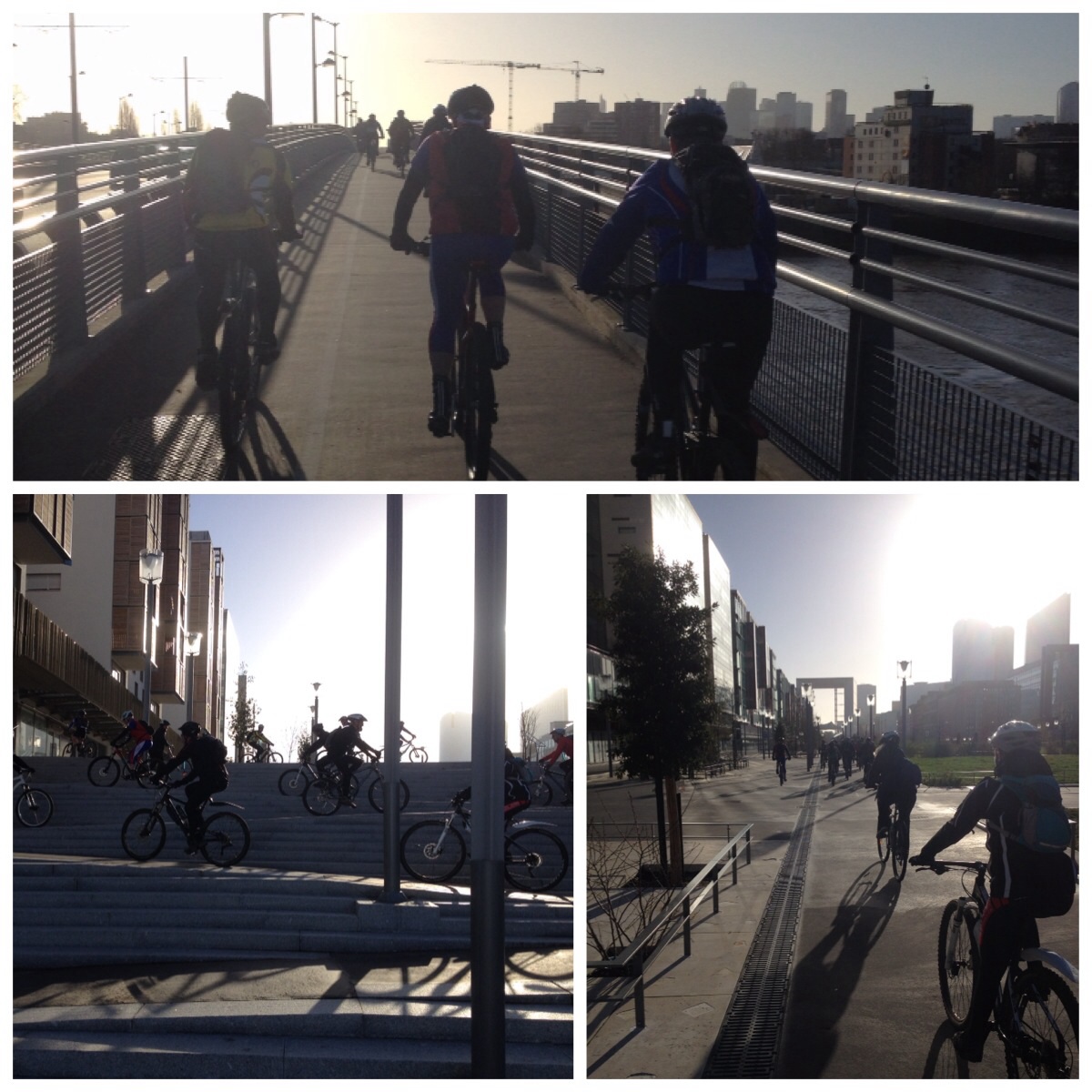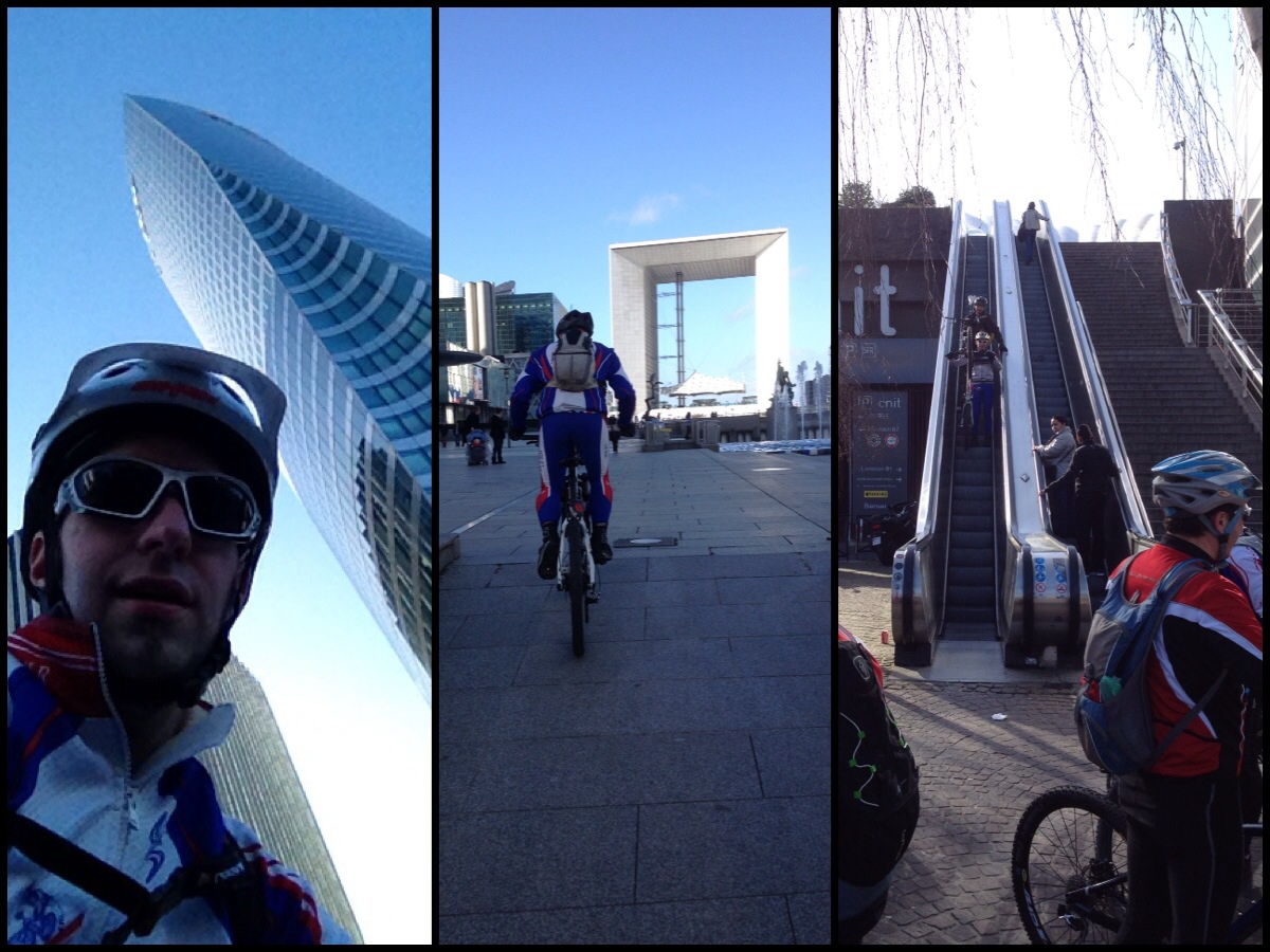 En route pour Bezons, La Garenne-Colombes, Nanterre, La Défense et ses marches causes du malheur de Steph, l'île de Puteaux, pont de Puteaux, bois de Boulogne par la mare Saint James et le jardin d'acclimatation, Porte Maillot, puis place de l'étoile, où Steph a pris le RER et Caroline a poursuivi de son côté.
