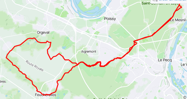 Quoi qu'il en soit, matinée d'hiver bien grise mais pas trop froide, guidage par Joël pour le tour classique vers Feucherolles, mais dans le sens contraire de ce que nous faisons habituellement.