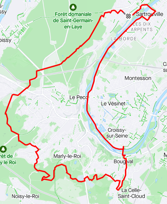 Pas une goutte de pluie, température idéale, direction la Celle Saint Cloud par le parc de Marly.