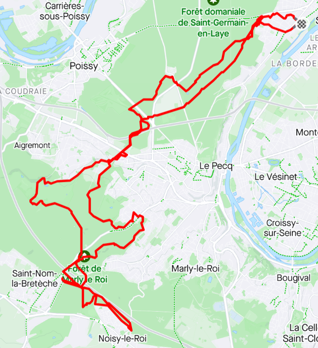 Serge, Renaud, Jacques, Michel, direction Noisy-le-Roi, guidés de main de maître par Serge, pour 43 km du club au club et 600D+, avec certains chemins que je ne connaissais pas, et une météo toujours aussi favorable.