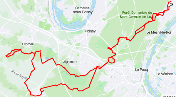 Samedi quatorze heures… et des poussières, j’arrive le dernier au club, comme à l’habitude. Claire, Sandrine, Benoit, Marc et Michel attendent. Une conversation rapide s’engage pour déterminer le parcours. Ce sera la ferme du Poult, puis peut-être le moulin d’Orgeval, que la plupart ne connaît pas. Michel prend le commandement des opérations, direction forêt de Marly dans un premier temps.
