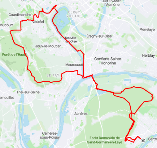 Départ direction Cergy, emmenés à un rythme soutenu par Thierry. Cadence imprimée par crainte d'une échappée du groupe du samedi j'imagine...