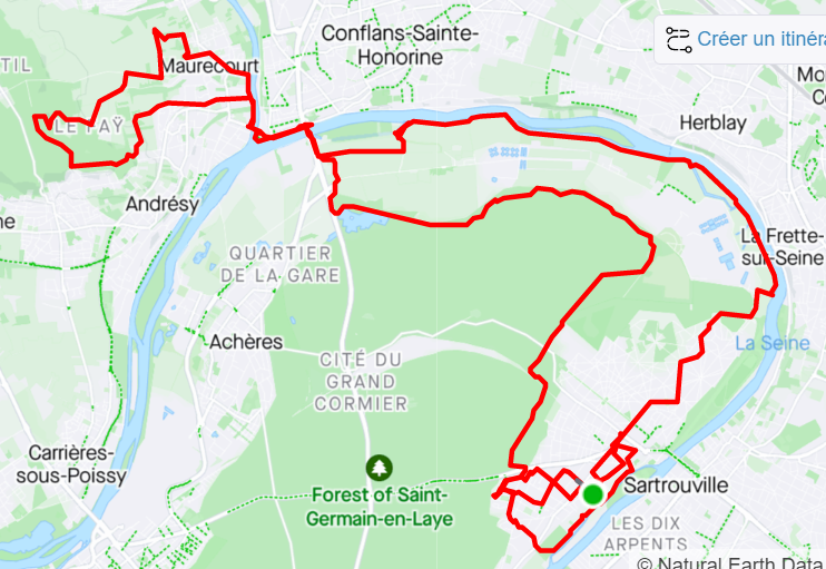 Nous avons poursuivi par les bords de Seine direction Conflans, avec un passage toujours désagréable à cause des ronces envahissantes. Puis un tour dans le début de l'Hautil, afin de faire un peu de dénivelé : 300 m D+.