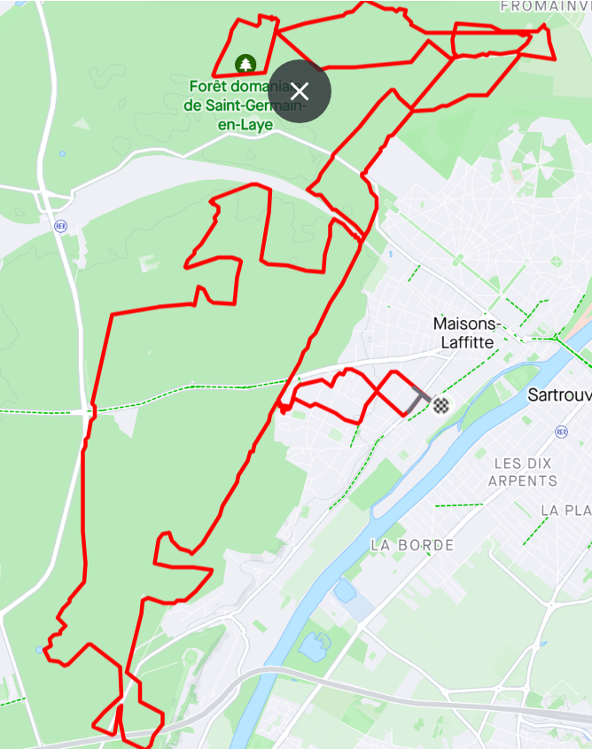 Nous perdons très rapidement Serge (désolé, mais vu sur Whatsapp qu'il a quand même bien profité de son après-midi). Puis vers l'étang du Corra retour en solo pour Bruno. Nous terminons à 8 nos tours et détours en forêt de Saint Germain sur une trace préparée comme d'hab par Bernard.