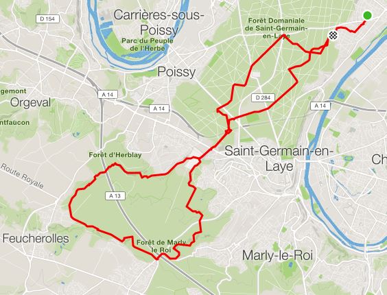 Bon, en fait de tour pas trop long, on a quand même fait nos 38km, avec 400m de dénivelé, forêt de Marly oblige.
