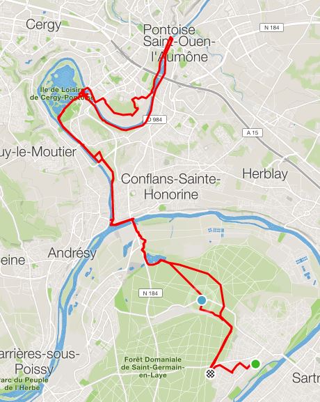 Pas trop tentés par la forêt de Marly, nous avons pris la direction de Pontoise, plus plat, et pour éviter un peu la boue.