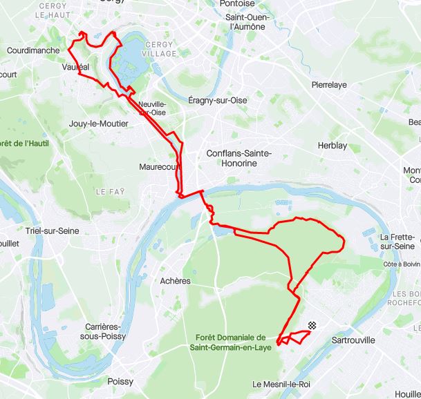 Ensuite, on est parti en exploration, à la découverte de chemins inhabituels dans Vauréal, puis redescente le long des rives de l’Oise, traversant Maurecourt puis rejoignant Andresy et Conflans (donc pas de forêt de l'Hautil).