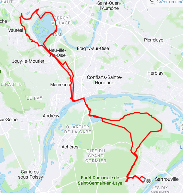 Arrivée à la passerelle de Cergy, décision de se scinder en 2 groupes :