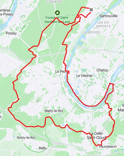 Nous terminons la boucle par le parc de Marly (celui qui domine les abreuvoirs du même nom), la forêt de Marly puis St Germain.