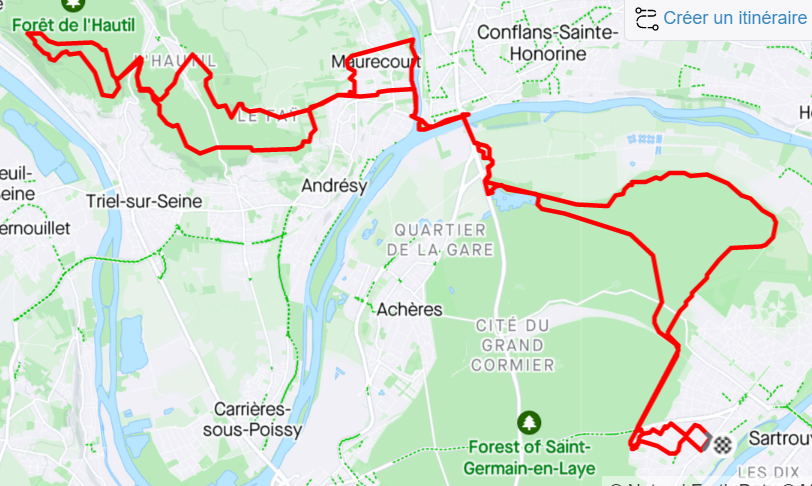 Un tour classique dans l'Hautil guidés par Joël pour le groupe composé de : Joël, Benjamin, Dom, Bruno, Thierry, Bernard, Serge V, Nick, Olivier, Benoît B, Michel, Sébastien. Ce qui a donné 48 km et 450 m D+.