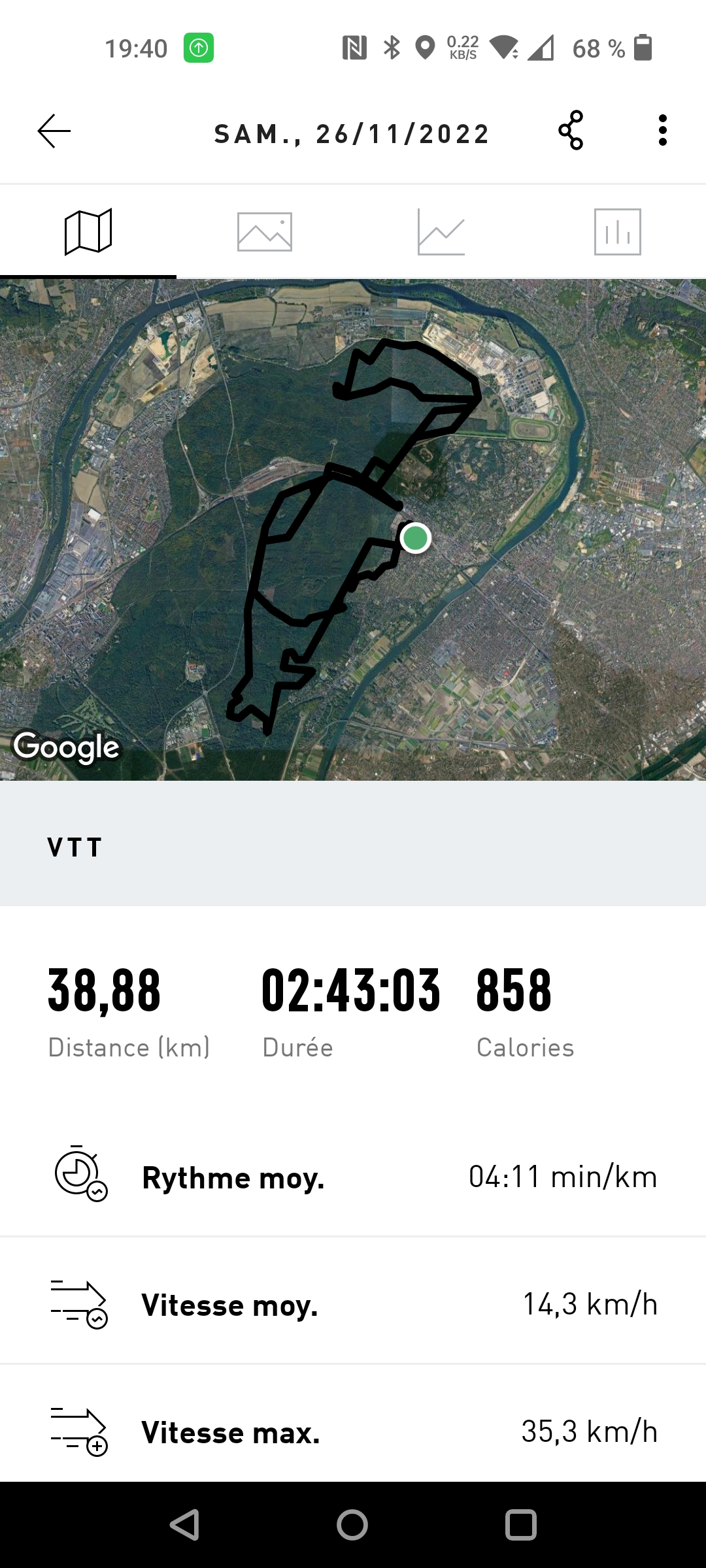 Nous sommes restés dans la forêt de Saint-Germain en Laye et nous avons parcouru environ 38 km.