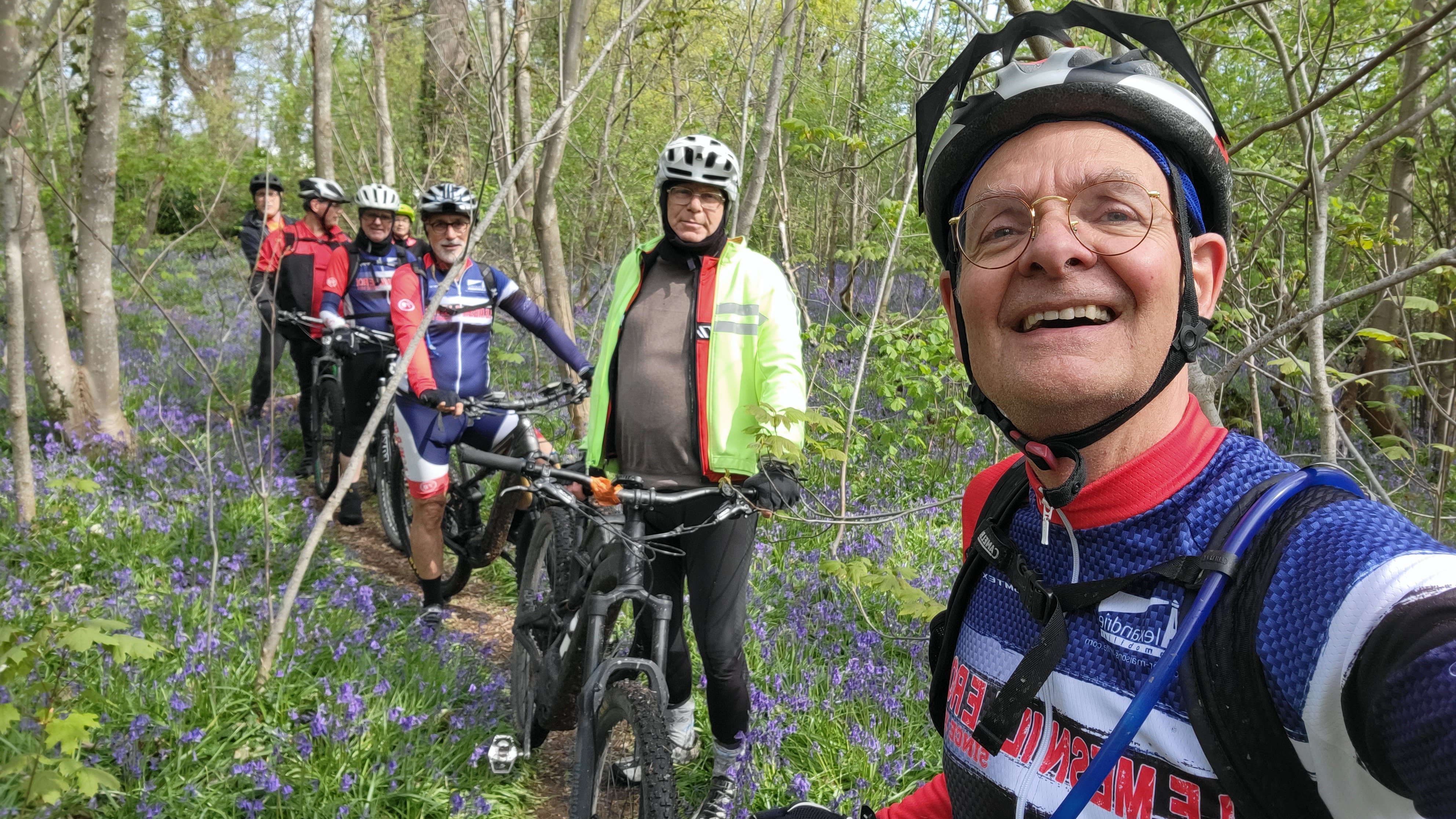 Le tour de la forêt de Saint Germain pour essayer d'éviter tant que faire se peut la boue, au milieu des jonquilles des bois rendant la forêt bleue par endroit. Nous étions 7 comme le montre la photo, à savoir Emmanuelle, Benoit, Vincent D, Bernard, Serge, Jean, Michel.