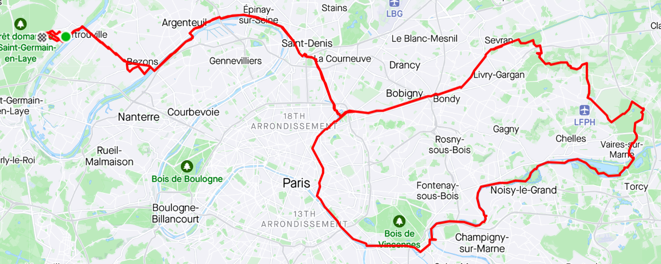L'est parisien, 131 km et 500 m D+ pour moi, voici le CR de Bernard posté sur le Whatsapp du samedi, je l'encourage à faire partie des rédacteurs de CR sur ce forum