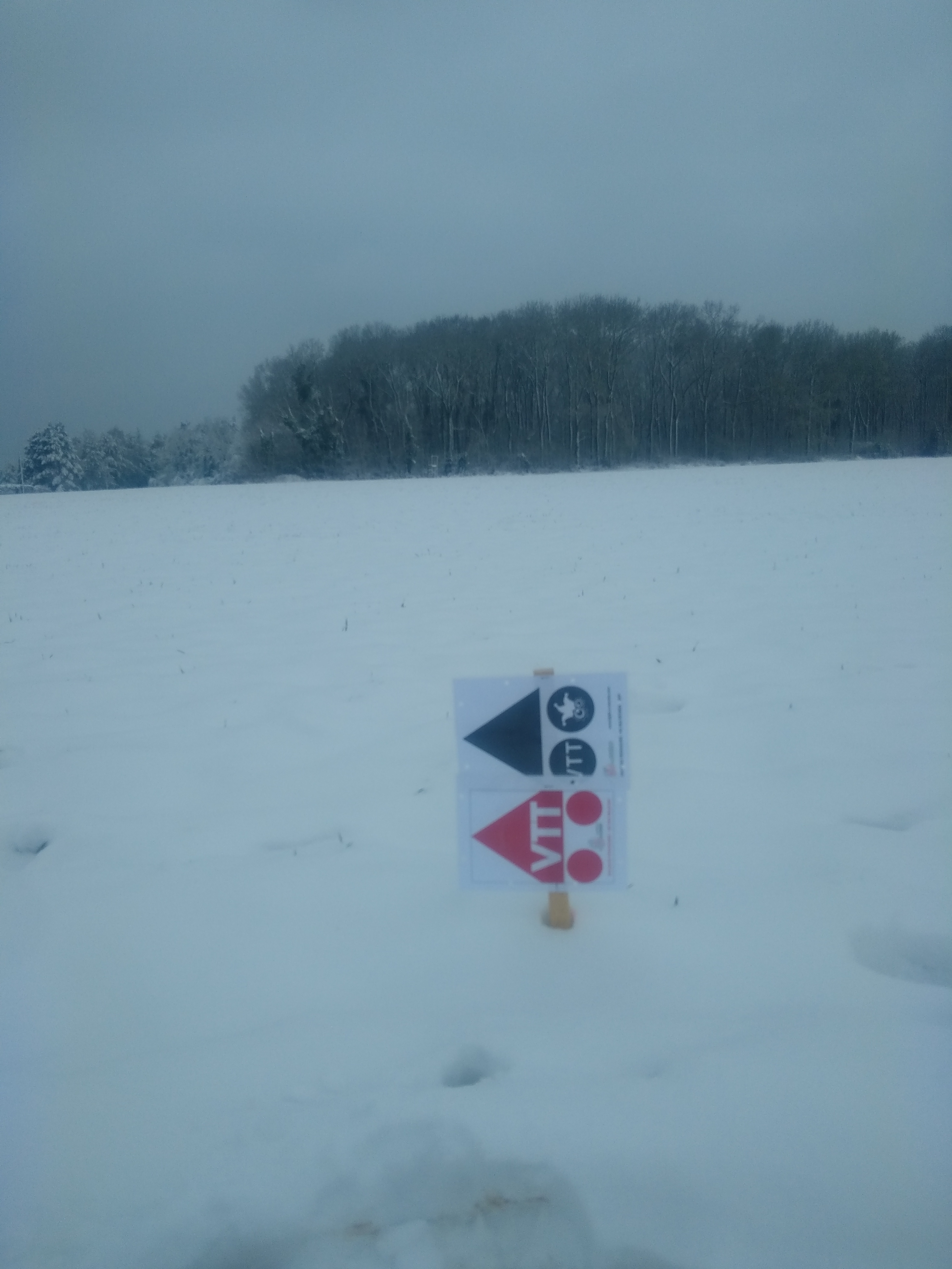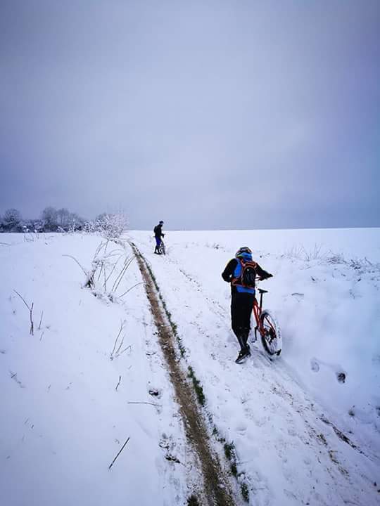 Départ comme prévu à 8h pour faire les boucles du circuit de 75km (71 au final) avec un ravito commun entre chaque boucle. On enchaine avec les circuit bleu et rouge , un tracé sympa entre singles et chemins roulants au milieu de la neige , agréablement surpris par ce nouveau tracé !