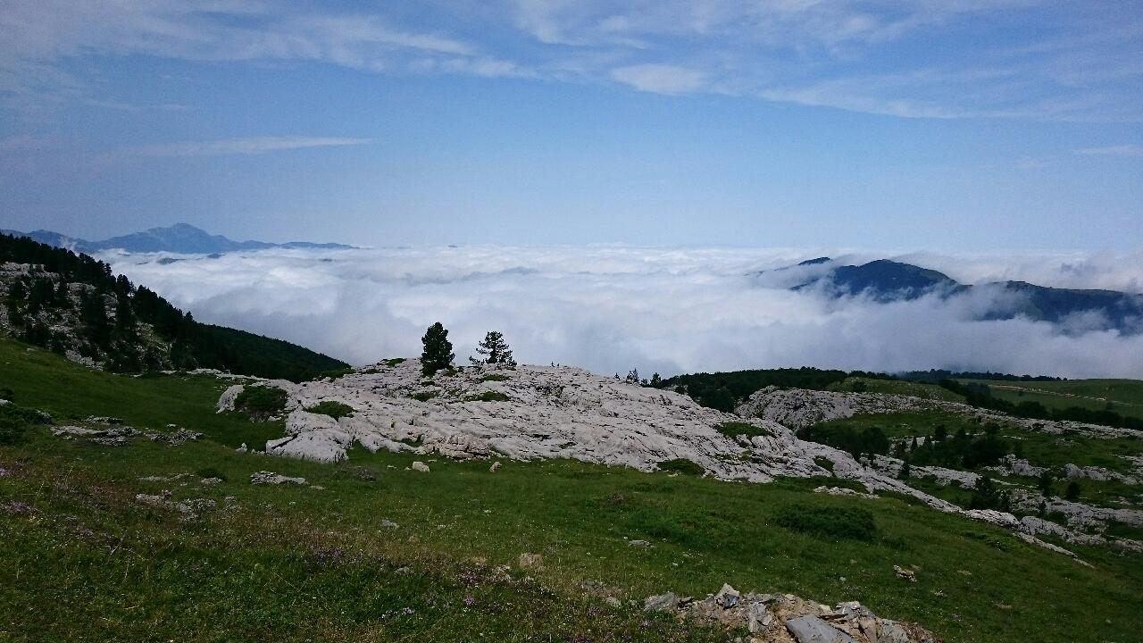 Je n'ai pas pu vraiment apprécier les paysages, le plafond nuageux étant très bas, avec le brouillard au dessus des 900m. Mais au moins, je n'ai pas eu trop chaud, et le rendement est tout de suite meilleur ;)
