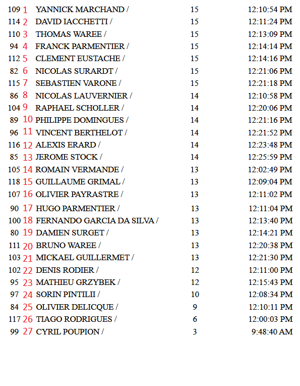 13eme/27 - 9ème jusqu'au 11ème tour, j'ai dégringolé de 4 places !! merci les crampes