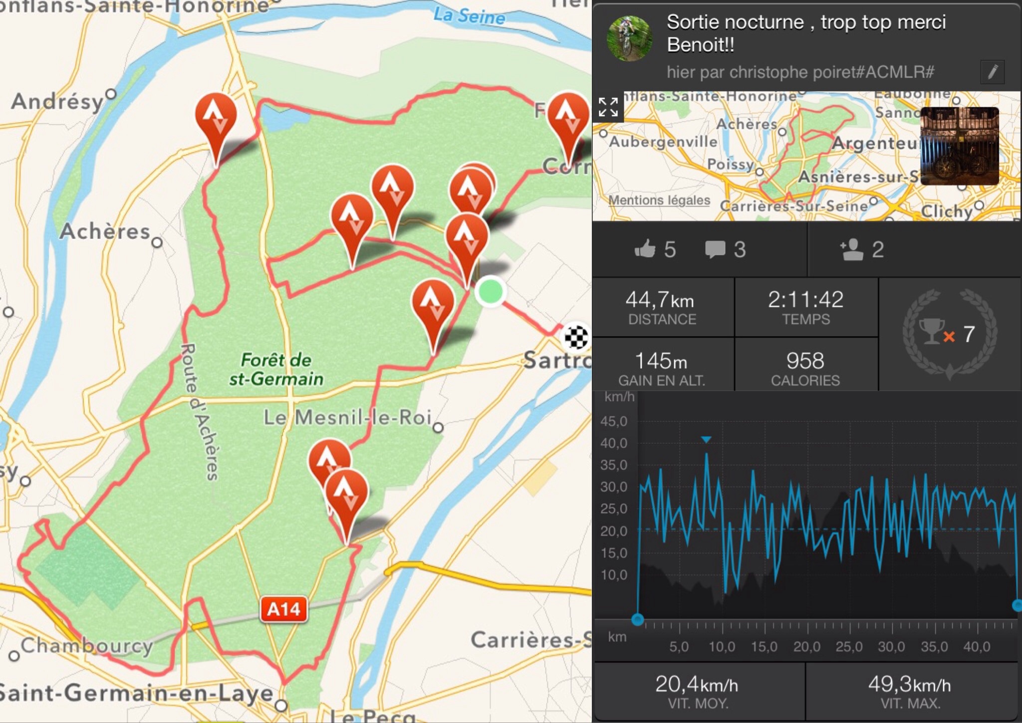 Rdv à la piscine à 20h direction Acheres pour recuperer son pote - j'avais jamais fait le single du cora la nuit et les sensations sont vraiment differentes!!