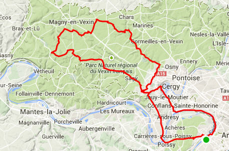 - Menucourt - Le Mesnil : 28 km en 1h10, 150m D+, 23,9 km/h de moyenne