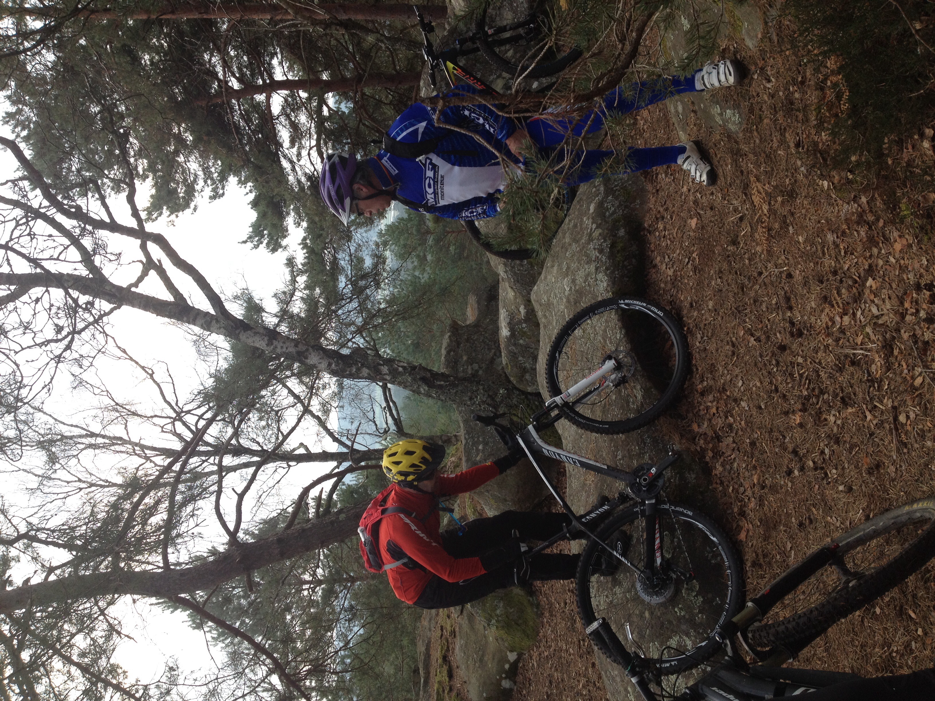 Des petites chutes sans gravitées – Thierry (à cause de moi quand je me suis arrêtée dans un single !), Manu en essayant de passer un rocher, et moi quand j’ai fait demi-tour et n’arrivée pas à sortir mon pied de mes pédales