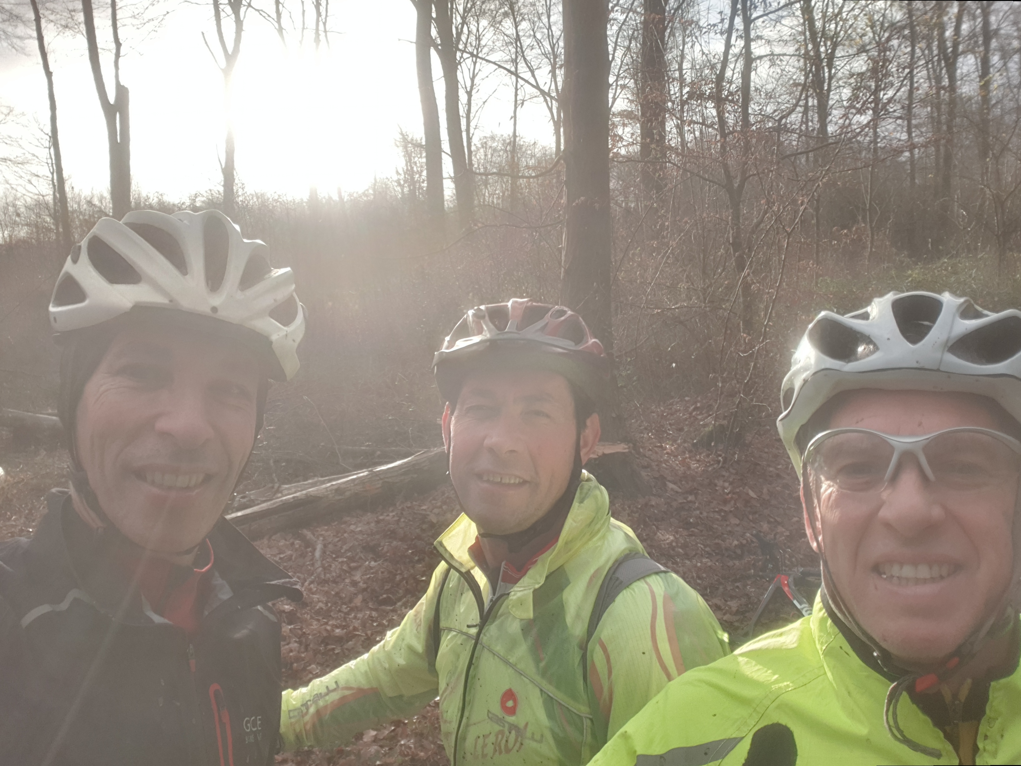 Sous un superbe soleil de fin d'automne nous étions 3 vttistes au rdv, Manu, Pascal (2 gilets jaunes) et moi-même